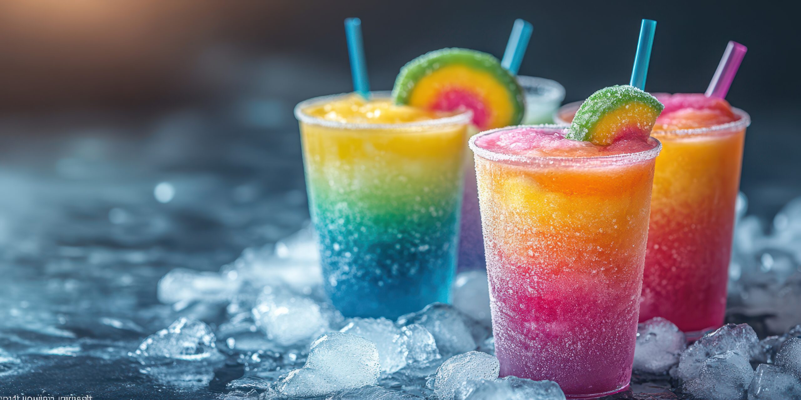 Colorful Slush Collection Cool down with our vibrant slush drinks made with natural fruit flavors and served in clear cups with colorful straws. Perfect for hot summer days and outdoor events.