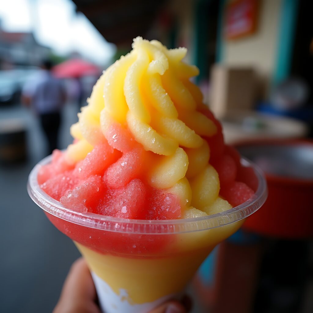 Shaved Ice Experience Our finely shaved ice is topped with premium syrups and fresh fruit for a light, refreshing treat. Each serving is prepared fresh and customizable with multiple topping options.