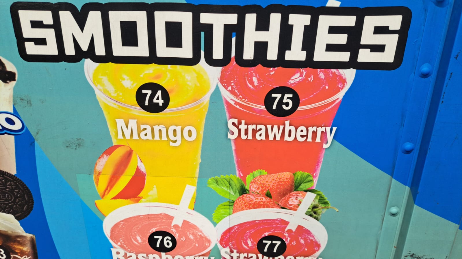 Banana, Chocolate, Coke Float, Orange Float, Oreo, Pineapple, Root Beer Float, Strawberry, Vanilla.